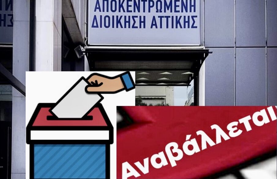 Η Αποκεντρωμένη Διοίκηση Αττικής αποφάσισε την αναβολή και επαναπροκήρυξη διεξαγωγής εκλογών για την ανάδειξη αιρετών εκπροσώπων στα Υπηρεσιακά Συμβούλια του μόνιμου και του με σχέση εργασίας Ιδιωτικού Δικαίου Αορίστου Χρόνου προσωπικού των Δήμων αρμοδιότητάς της (πλην Δήμου Αθηναίων και Πειραιώς).