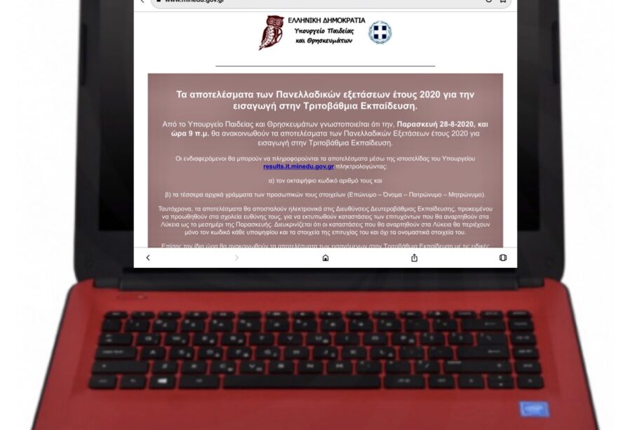Οι ενδιαφερόμενοι μπορούν να πληροφορούνται τα αποτελέσματά τους μέσω της ιστοσελίδας του υπουργείου, https://results.it.minedu.gov.gr, πληκτρολογώντας τον οκταψήφιο κωδικό αριθμό τους και τα τέσσερα αρχικά γράμματα των προσωπικών τους στοιχείων (Επώνυμο – Όνομα – Πατρώνυμο – Μητρώνυμο).