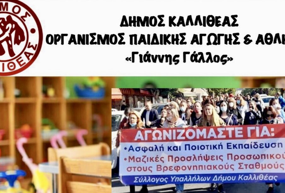 Προς εκτόνωση των κινητοποιήσεων τους στους Βρεφονηπιακούς Σταθμούς του Δήμου Καλλιθέας φαίνεται να προχωρούν οι εργαζόμενοι μετά τις δεσμεύσεις του προέδρου του Δ.Σ. του Οργανισμού Παιδικής Αγωγής και Άθλησης «Γιάννης Γάλλος» Μανώλη Κωστάκη για προσλήψεις προσωπικού καθώς και για την υλοποίηση των σοβαρών επίσης αιτημάτων που έχει θέσει ο Σύλλογος Υπαλλήλων του Δήμου Καλλιθέας προκειμένου να γίνουν λειτουργικά το σύνολο των Βρεφικών τμημάτων που ξεκίνησαν με σοβαρές υλικοτεχνικές ελλείψεις.