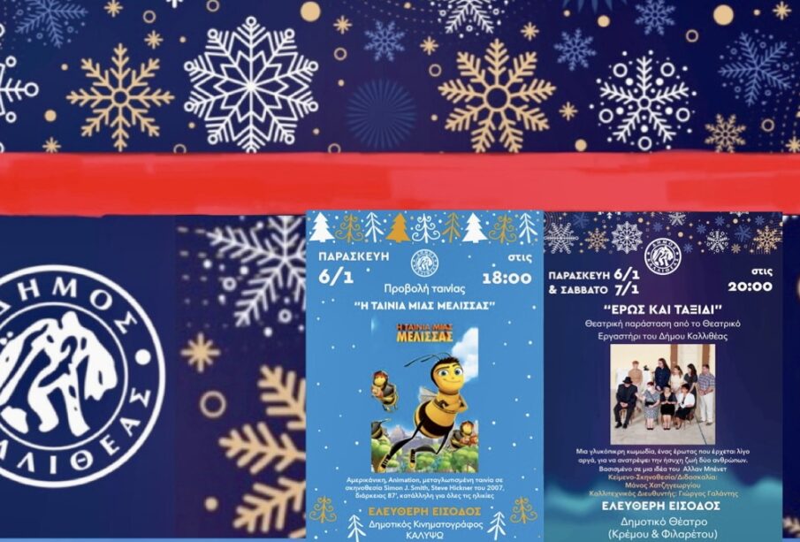 Μια ακόμη γιορτινή ημέρα και ο Δήμος Καλλιθέας συμμετέχει στο εορταστικό κλίμα με την προβολή της ταινίας «Η ταινία μιας μέλισσας» και τη θεατρική παράσταση «Έρως και ταξίδι».