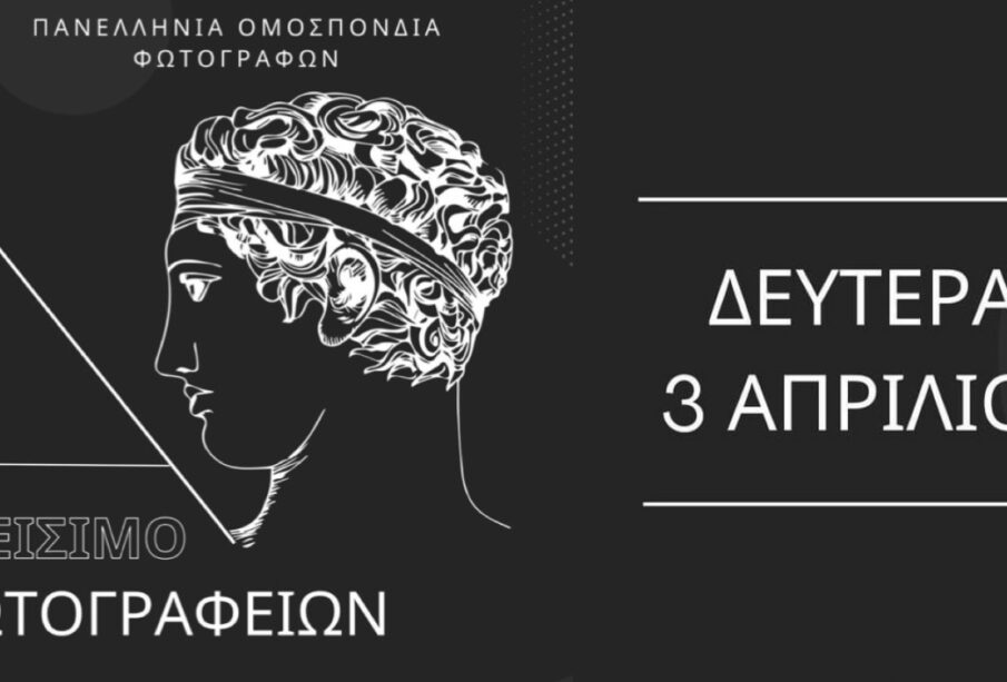 Η Πανελλήνια Ομοσπονδία Φωτογράφων καλεί τις ενώσεις και σωματεία φωτογράφων και όλους τους επαγγελματίες φωτογράφους σε μαζικές κινητοποιήσεις, τη Δευτέρα 3 Απριλίου 2023.
