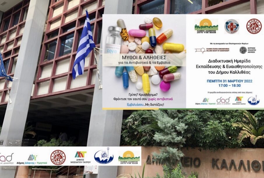 Τους «μύθους» και τις αλήθειες» σχετικά με τα αντιβιοτικά και τα εμβόλια έχεις ως κεντρικό θέμα η διαδικτυακή ημερίδα εκπαίδευσης – ευαισθητοποίησης που συνδιοργανώνουν το Ελληνικό Διαδημοτικό Δίκτυο Υγιών Πόλεων με το Δήμο Καλλιθέας και τους Δήμους Μοσχάτου – Ταύρου, Παλαιού Φαλήρου, Αγ. Δημητρίου και Δάφνης – Υμηττού και με τη συνεργασία της Ελληνικής Εταιρείας Χημειοθεραπείας, υπό την Αιγίδα του Ιατρικού Συλλόγου Αθηνών.