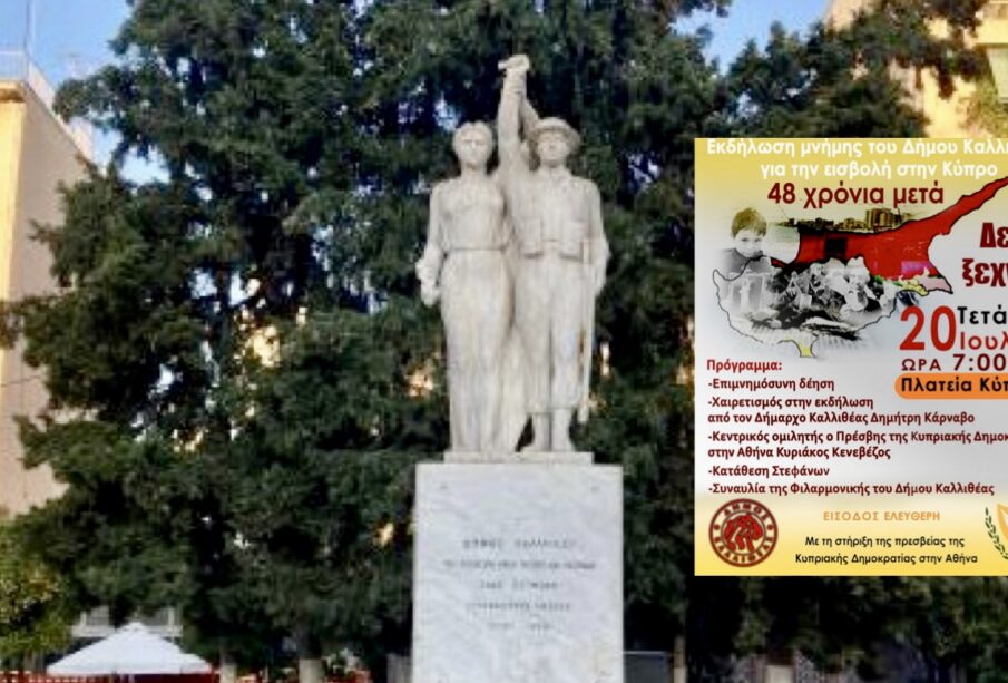 Δ. Καλλιθέας: Εκδήλωση μνήμης για την εισβολή στην Κύπρο – Σήμερα 20/7 στην Πλ. Κύπρου στις 19:00