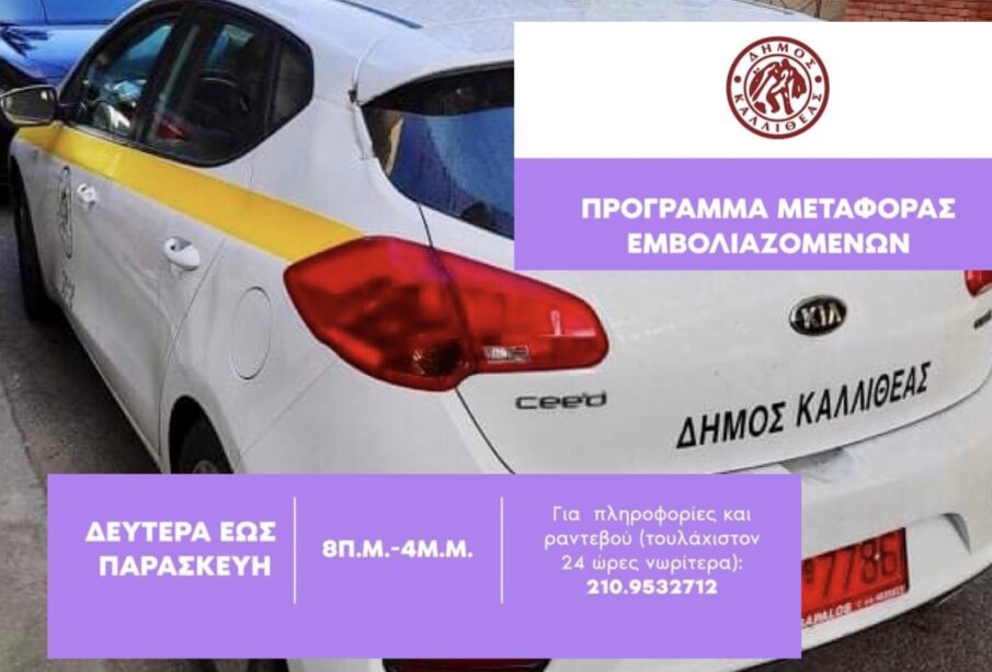 Ξεκίνησε σήμερα Παρασκευή 19 Φεβρουαρίου 2021 η δράση του Δήμου Καλλιθέας για την μεταφορά κατοίκων που δεν διαθέτουν μέσο μεταφοράς προκειμένου να μεταφερθούν στα εμβολιστικά κέντρα όπου τους έχει καθοριστεί το ραντεβού για τον εμβολιασμό τους. Η μεταφορά αφορά ακόμη και εμβολιαστικά κέντρα εκτός Καλλιθέας σε ακτίνα 10 χιλιομέτρων.