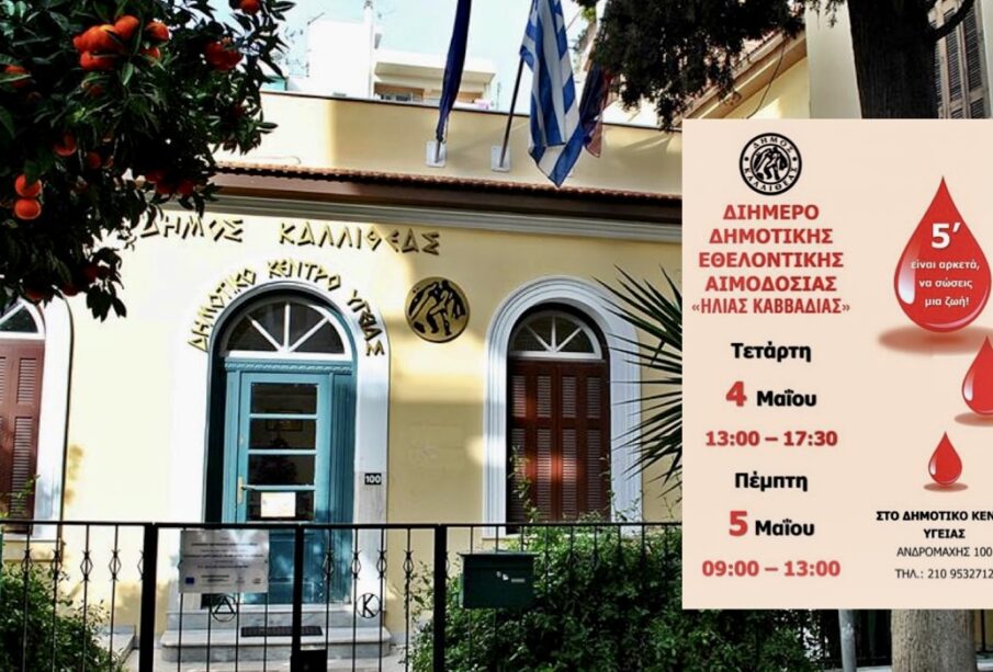 Με σύνθημα «5′ είναι αρκετά να σώσεις μια ζωή» ξεκινά αύριο Τετάρτη 4 Μαΐου 2022 το διήμερο της Εθελοντικής Αιμοδοσίας που οργανώνει ο Δήμος Καλλιθέας στη μνήμη του επί σειρά ετών αείμνηστου αντιδημάρχου Πρόνοιας του Δήμου ιατρού Ηλία Καββαδία.