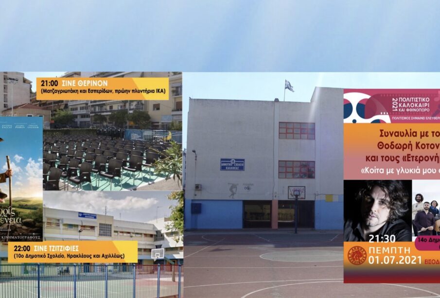 21:30 14ο Δημοτικό Σχολείο (Γ. Ιατρίδου 140) «Κοίτα με γλυκιά μου αγάπη» Συναυλία με τον Θοδωρή Κοτονιά και τους «Έτερονήμισυ»