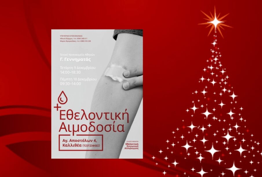 Εθελοντική Κοινωνική Αλληλεγγύη: Εθελοντική Αιμοδοσία Τετάρτη 9/12 & Πέμπτη 10/12