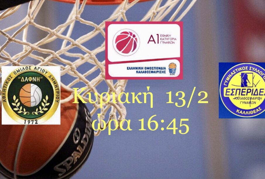 Στη δυνατή έδρα της Δάφνης Αγ. Δημητρίου δοκιμάζονται οι Εσπερίδες για την 12η αγωνιστική της Α1 κατηγορίας γυναικών σήμερα, Κυριακή 13 Φεβρουαρίου 2022 στις 16:45.