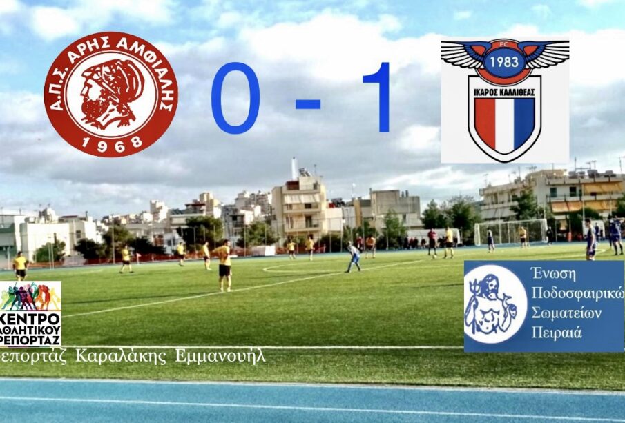Η ΑΕ Ίκαρου Καλλιθέας επικράτησε 1 – 0 του Άρη Αμφιάλης στην αναμέτρηση που διεξήχθη το μεσημέρι της Κυριακής 15 Ιανουαρίου στο δημοτικό στάδιο Κερατσινίου «Σιταποθήκες» στο πλαίσιο της 11ης αγωνιστικής της Α’ Κατηγορίας του 2ου Ομίλου της Ε. Π. Σ. Πειραιά. Το διακύβευμα του αγώνα δεν ήταν ιδιαιτέρως υψηλό μολονότι αμφότεροι επιθυμούσαν διακαώς τη νίκη μια και προέρχονταν από σερί ανεπιτυχών αποτελεσμάτων. Οι φιλοξενούμενοι επέδειξαν μεγαλύτερο ζήλο,ήταν ποιοτικώς ανώτεροι των γηπεδούχων στο μεγαλύτερο μέρος του αγώνα και εξαργύρωσαν την υπεροχή τους με το γκολ του Τρικαμηνά στο 44ο λεπτό της αναμέτρησης.