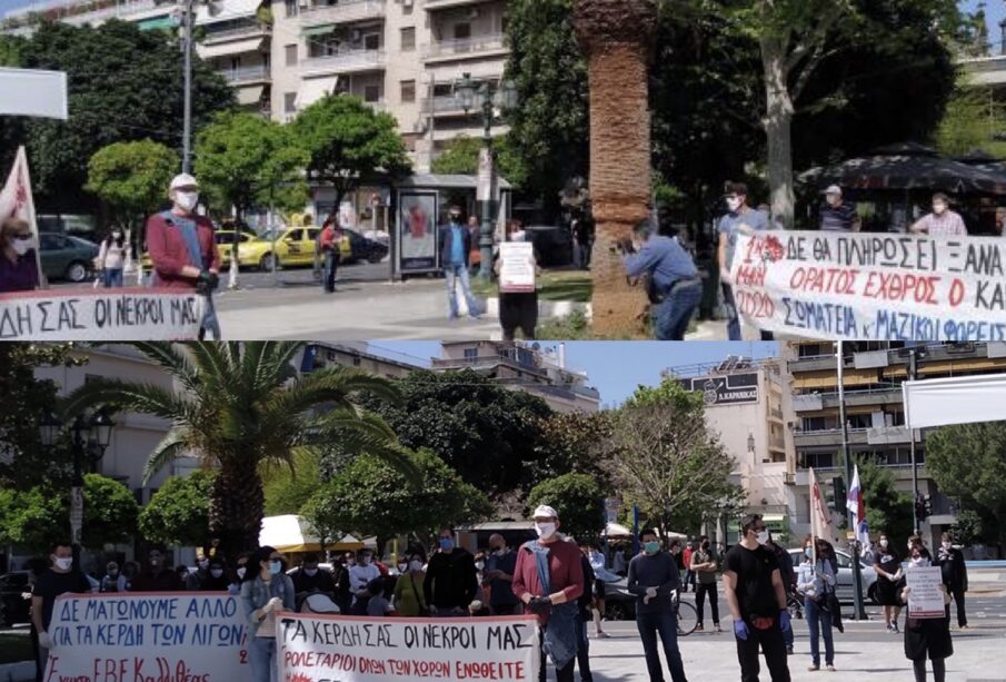 Στην πλατεία Κύπρου με συνθήματα «Ο λαός έχει πληρώσει πολλά, δεν θα πληρώσει ξανά», «Τα κέρδη σας οι νεκροί μας!», «Προλετάριοι όλων των χωρών ενωθείτε!» αντηχούν από τις φωνές των συγκεντρωμένων και τα πανό.