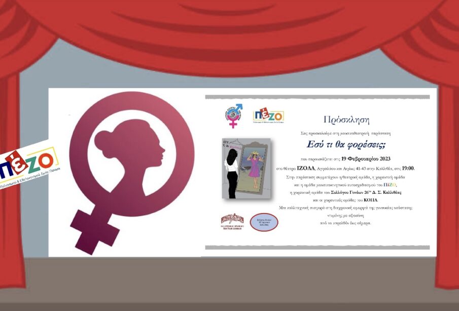 Αυτό αναδεικνύεται στην παράσταση, «Εσύ τι θα φορέσεις;», που θα παρακολουθήσουμε με τεράστιο ενδιαφέρον στις 19 Φλεβάρη στο θέατρο ΙΖΟΛΑ σε συνδιοργάνωση του Δήμου Καλλιθέας και του Πολιτιστικού Συλλόγου ΠέΖΟ.