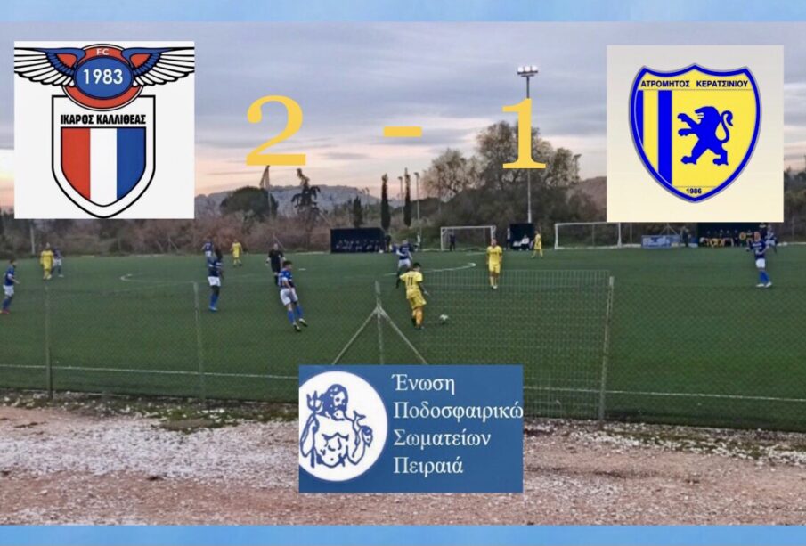 Ο Ίκαρος καλλιθέας επικράτησε του Ατρόμητου Κερατσινίου με 2 – 1 στο Γήπεδο Παραλία Καλλιθέας για την 18η αγωνιστική του 2ου ομίλου της Α΄ Κατηγορίας Ε.Π.Σ Πειραιά. Οι γηπεδούχοι αν και βρέθηκαν πίσω στο σκορ, κατάφεραν να κάνουν την ολική ανατροπή με το νικητήριο γκολ να έρχεται στις καθυστερήσεις του αγώνα.