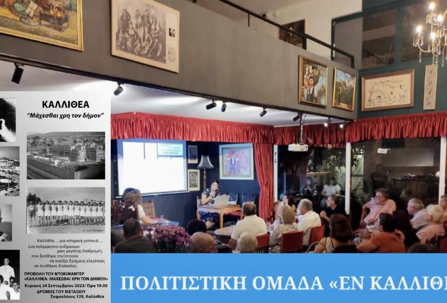 Μια ιστορικού περιεχομένου εκδήλωση για την Καλλιθέα του χθες διοργανώνει απόψε, Κυριακή 24 Σεπτεμβρίου 2023 στις 19:00 η πολιτιστική ομάδα «Εν Καλλιθέα».