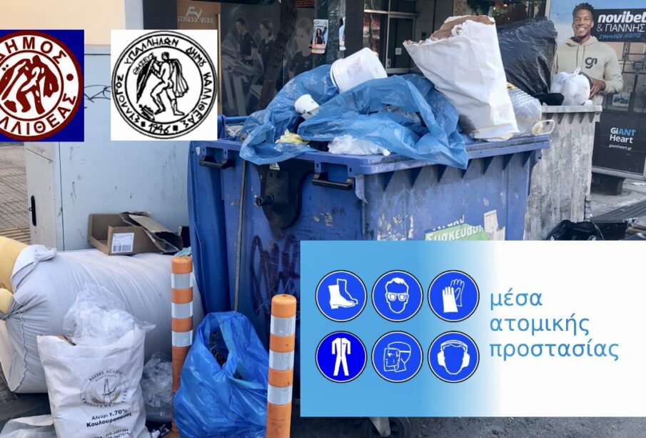 Καλλιθέα: «Ντυμένοι» κάδοι με σκουπίδια, «γυμνοί» εργαζόμενοι λόγω έλλειψης Μέτρων Ατομικής Προστασίας