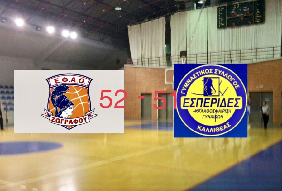 Λύγισαν οι Εσπερίδες στα 6″ και έχασαν με 52-51 από τον ΕΦΑΟ Ζωγράφου