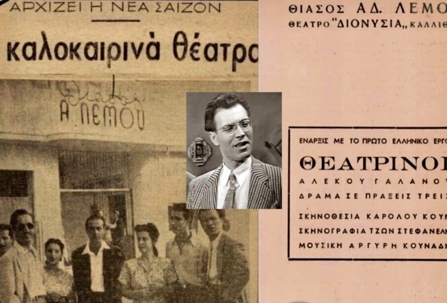 Πιο συγκεκριμένα, “…όταν ο Λεμός επέστρεψε στην Ελλάδα από την Αίγυπτο το καλοκαίρι του 1947 σχηματίζει προσωπικό θίασο, το “Θίασο Λεμού“, και αρχίζει τις παραστάσεις του στο Θέατρο “Παλλάδιο” της Καλλιθέας, με σκοπό την ανακάλυψη και προβολή των νέων μεταπολεμικών θεατρικών δυνάμεων.