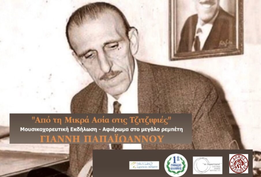 Ένα μοναδικό μουσικοχορευτικό αφιέρωμα στον πρωτοπόρο του ρεμπέτικου Γιάννη Παπαϊωάννου θα παρουσιάσουν το 1ο Γυμνάσιο Καλλιθέας, το Μουσικό Σχολείο Αλίμου και ο Πολιτιστικός Σύλλογος Καλλιθέας «Το Χοροστασιό» απόψε, Κυριακή 19 Μαρτίου 2023 στις 19:00 στο αμφιθέατρο του 1ου Γυμνασίου πρώην «Ιζόλα».