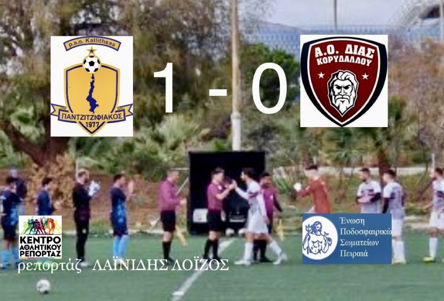 Στο γήπεδο της Παραλίας στην Καλλιθέα ο Παντζιτζιφιακός επικράτησε με 1-0 του Δία Κορυδαλλού. Σημαντική νίκη με βαθμολογικό όφελος για τους γηπεδούχους, ενώ οι φιλοξενούμενοι “γνώρισαν” δεύτερη συνεχόμενη ήττα. Η αναμέτρηση έγινε στο πλαίσιο της Α’κατηγορίας του 2ου ομίλου της ΕΠΣ Πειραιά.Ο αγώνας έγινε κάτω από κακές καιρικές συνθήκες και ο αέρας επηρέασε τόσο την εικόνα του αγώνα όσο και τον κόσμο στις κερκίδες.