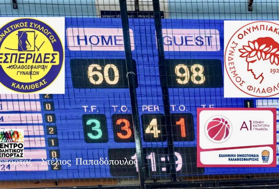Στο κλειστό γυμναστηρίο του Εσπέρου στην Καλλιθέα οι Εσπερίδες υποδέχτηκαν για την 15η στροφή της Α1 γυναικών, τον πρωτοπόρο της βαθμολογίας Ολυμπιακό. Οι ερυθρόλευκες πέρασαν «αέρας» από το κλειστό επικρατώντας εύκολα με 98-60.