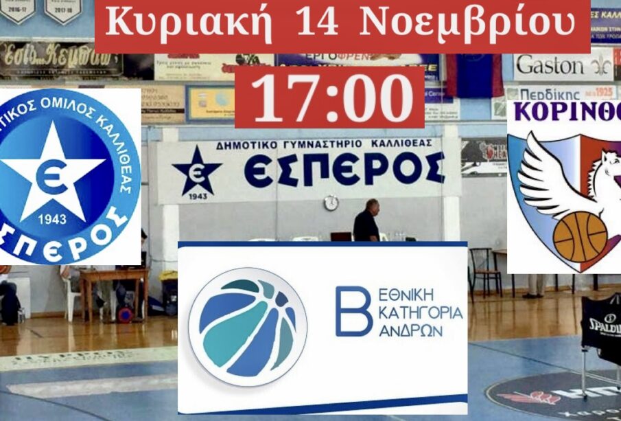 Το «συγκάτοικο» του στην κορυφή της βαθμολογίας του 1ου Ομίλου της Β’ Εθνικής ΚΑΟ Κορίνθου αντιμετωπίζει ο Π.Ο.Κ. Έσπερος σήμερα Κυριακή 14 Νοεμβρίου 2021 στις 17:00 στο Δημοτικό Γυμναστήριο «Έσπερος».