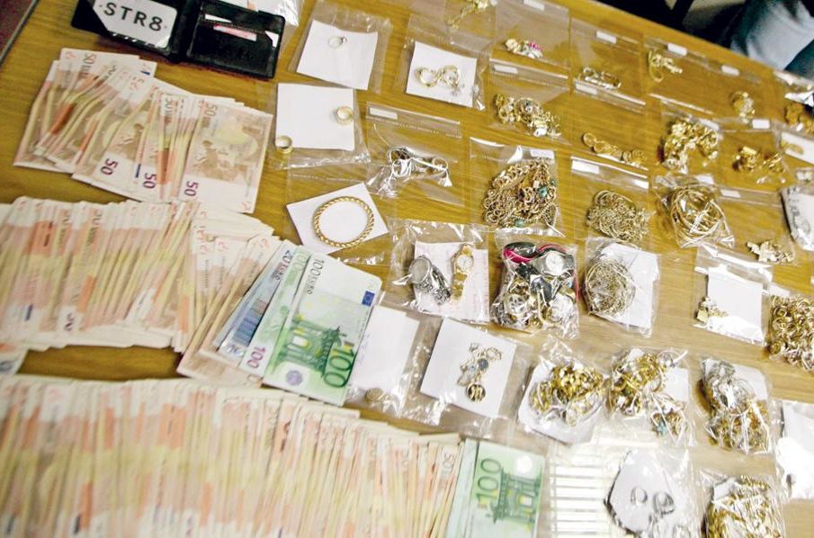 Στη συνέχεια εντόπισαν το χρηματοκιβώτιο που υπήρχε μέσα στο σπίτι και δεν το παραβίασαν αλλά γνώριζαν ή ανακάλυψαν με κάποιο τρόπο τον κωδικό, το άνοιξαν και αφαίρεσαν από το εσωτερικό του 150.000 ευρώ σε μετρητά, κοσμήματα και χρυσαφικά αξίας 30.000 ευρώ και μία συλλογή γραμματοσήμων αξίας 20.000 ευρώ.