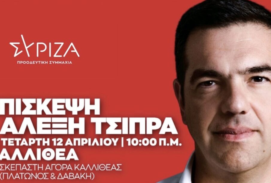 Την Κεντρική Λαϊκή Αγορά της Καλλιθέας (Πλάτωνος & Δαβάκη) θα επισκεφτεί αύριο, Μ. Τετάρτη 12 Απριλίου 2023 στις 10 το πρωί, ο πρόεδρος του ΣΥΡΙΖΑ-Προοδευτική Συμμαχία Αλέξης Τσίπρας.