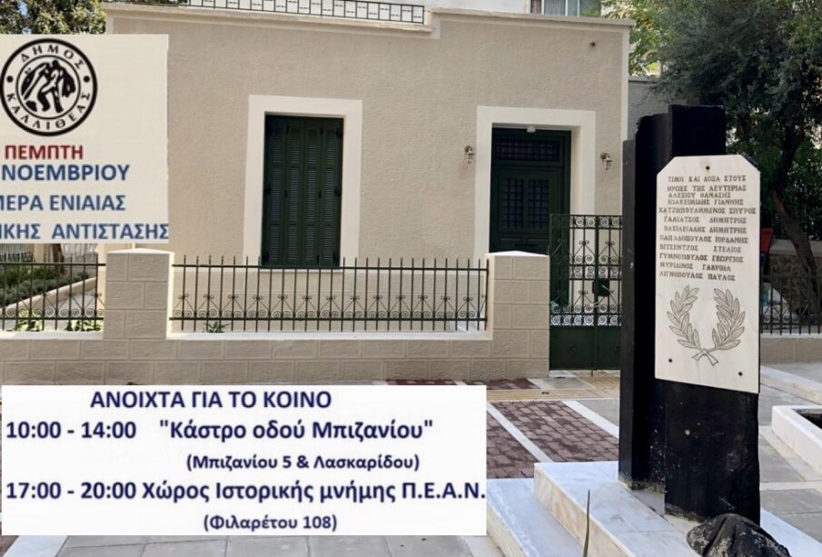 Ο Δήμος Καλλιθέας τιμά τη σημερινή επέτειο σε δύο εμβληματικά σημεία της πόλης τα οποία θα είναι ανοιχτά στο κοινό.