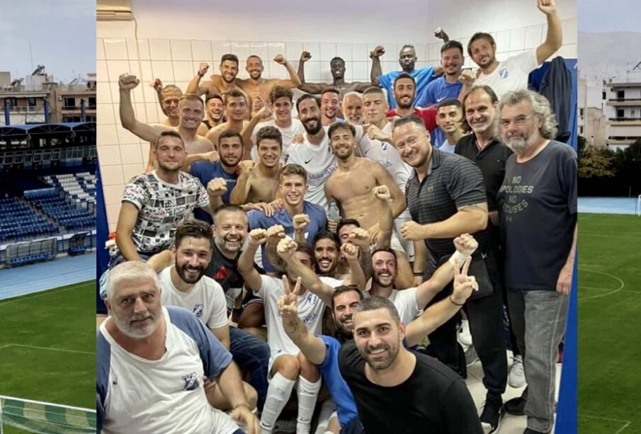Παίκτες, διοίκηση, προπονητές, προσωπικό της ομάδας έγιναν μια αγκαλιά στα αποδυτήρια μετά τη λήξη του αγώνα με το. Αιγάλεω έχοντας εξασφαλίσει την άνοδο στη Super League 2.