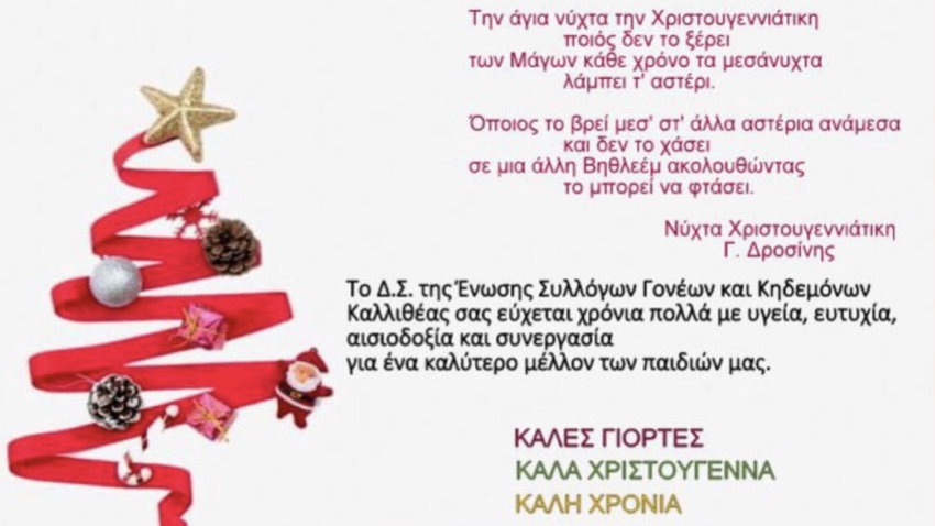 Ποιητικές ευχές από την Ένωση Συλλόγων Γονέων Καλλιθέας