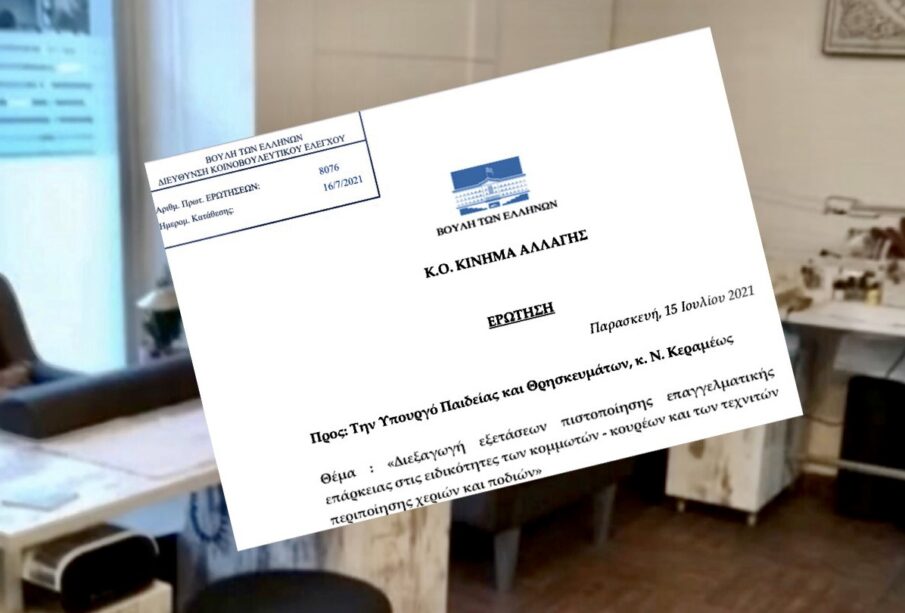 Στην ερώτηση τους οι βουλευτές κάνουν ιδιαίτερη αναφορά στις ειδικότητες των κομμωτών – κουρέων και των τεχνιτών περιποίησης χεριών και ποδιών , για τους οποίους έχουν να διεξαχθούν εξετάσεις από το 2015.