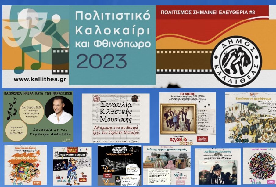 Την τρίτη του εβδομάδα ξεκινά το πρόγραμμα του Δήμου Καλλιθέας «Πολιτιστικό Καλοκαίρι και Φθινόπωρο 2023» από σήμερα, Δευτέρα 26 Ιουνίου 2023.