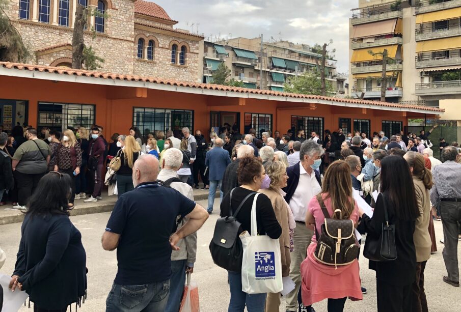 Στην Καλλιθέα η προσέλευση του κόσμου ξεκίνησε από το πρωί και όσο πέρναγε η ώρα πολλαπλασιαζόταν με αποτέλεσμα να χρειαστεί και εδώ η παράταση της ψηφοφορίας για δύο ακόμη ώρες.