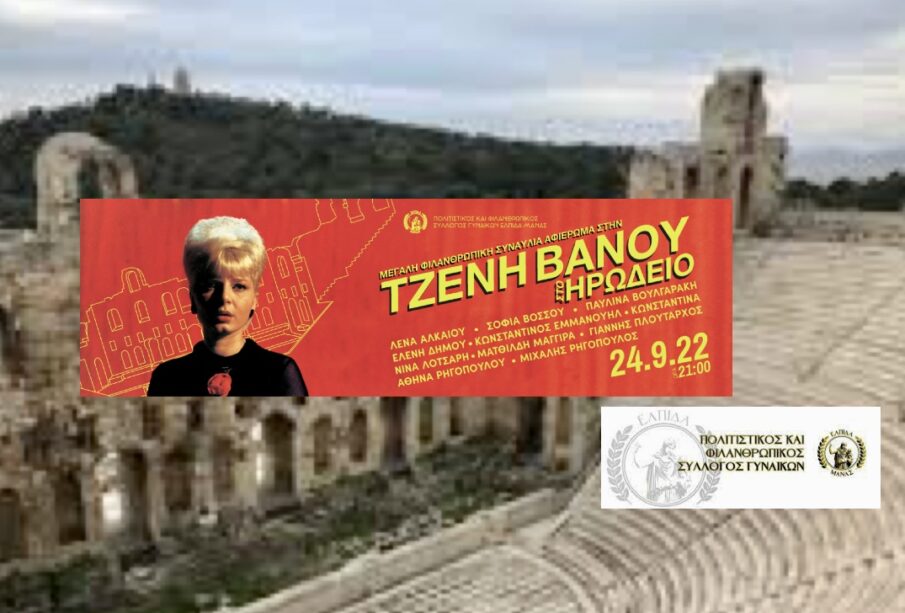 Μια μεγάλη φιλανθρωπική συναυλία με πρωτοβουλία του Πολιτιστικού και Φιλανθρωπικού Γυναικείου Συλλόγου «Ελπίδα Μάνας», που εδρεύει στην Καλλιθέα, αφιερωμένη στην πιο εμβληματική φωνή του ελληνικού ρεπερτορίου της Τζένης Βάνου θα πραγματοποιηθεί το Σάββατο 24 Σεπτεμβρίου 2022 στο Ηρώδειο.