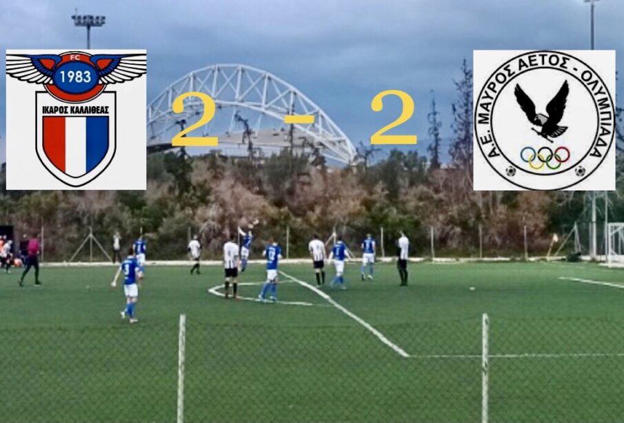 Ο Ίκαρος Καλλιθέας αναδείχθηκε ισόπαλος (2-2) απέναντι στην ομάδα του Μαύρου Αετού Ολυμπιάδας στο Γήπεδο Παραλία Καλλιθέας για την 17η αγωνιστική του 2ου ομίλου της Α΄ κατηγορίας Ε.Π.Σ Πειραιά. Οι φιλοξενούμενοι αν και βρέθηκαν πίσω στο σκορ με 2-0 στο πρώτο ημίχρονο, κατάφεραν και έφεραν το ματς στα ίσα, κάνοντας ένα κυριαρχικό δεύτερο ημίχρονο.