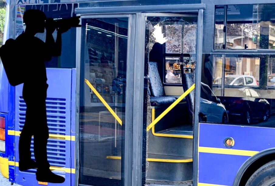 Στάση τρόλεϊ στην Ελ. Βενιζέλου στο ύψος της οδού Χαροκόπου και με το άνοιγμα της πόρτας για αποβίβαση επιβατών γίνεται θρύψαλα το τζάμι της πόρτας.