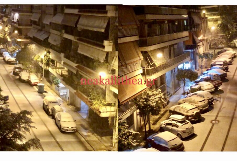 Ωρά 00:40 ξημέρωμα Τρίτης 16 Φεβρουαρίου και η βόρεια Καλλιθέα ντύθηκε στα λευκά.
