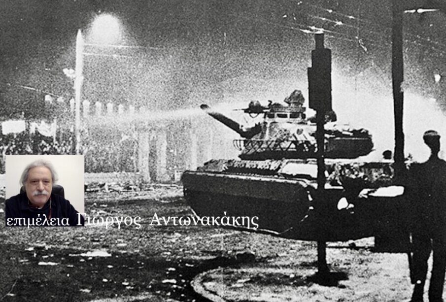 Κατά τη 1 τα ξημερώματα τα τανκς έχουν ζώσει το Πολυτεχνείο. Τα μεγάφωνα και ο ραδιοσταθμός μεταδίδουν: «Μη φοβάστε τα τανκς», «Κάτω ο φασισμός», «Φαντάροι είμαστε αδέρφια σας. Μη γίνετε δολοφόνοι». Οι φοιτητές τοποθετούν ένα αυτοκίνητο πίσω από την κεντρική πύλη για να εμποδίσει την είσοδο των τανκς, ενώ ανεβασμένοι στα κάγκελα, τραγουδούν τον εθνικό ύμνο και φωνάζουν στους φαντάρους: «Είμαστε αδέρφια», «Λαός και στρατός ενωμένοι». Η Συντονιστική Επιτροπή προσπαθεί να διαπραγματευτεί την ασφαλή έξοδο του κόσμου.