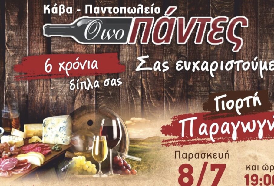 Έξι χρόνια λειτουργίας συμπληρώνουν σήμερα, Παρασκευή 8 Ιουλίου 2022, οι «Οινοπάντες» και «στήνουν» το δικό τους γλέντι με την 3η γιορτή παραγωγών συμμετέχοντας παράλληλα και στο 1ο Φεστιβάλ αγορών και διασκέδασης που συνδιοργανώνουν ο Εμπορικός Σύλλογος Καλλιθέας με το Εμπορικό Επιμελητήριο Αθηνών και το Δήμο Καλλιθέας.