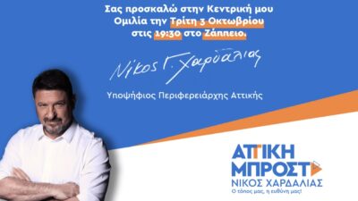 Το «Πράσινο Κίνημα» στηρίζει το Νίκο Χαρδαλιά και τον Συνδυασμό «Αττική Μπροστά» στις επικείμενες αυτοδιοικητικές εκλογές. Σε σύσκεψη της Περιφερειακής ...Απόψε στις 19:30 η παρουσίαση των υποψηφίων του Γιώργου Ιωακειμίδη