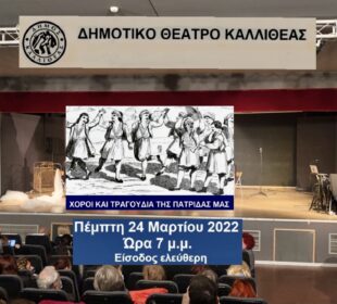 Ανοίγει απόψε η «αυλαία» των εορταστικών εκδηλώσεων του Δήμου Καλλιθέας για την Εθνική Επέτειο της 25ης Μαρτίου. Πιο αναλυτικά η Ομάδα Λαϊκού ...ΠΟΕ – ΟΤΑ: Να αποσυρθεί τώρα η «ντροπολογία» του υπουργείου Εσωτερικών