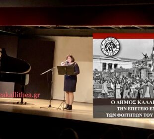Εκδήλωση μνήμης και τιμής για την επέτειο της εξέγερσης των φοιτητών του Πολυτεχνείου πραγματοποιήθηκε από το Δήμο Καλλιθέας στο Δημοτικό Θέατρο. Στην ...Για μια δημοκρατική και ακμαία πατρίδα, για μια δίκαιη και ισχυρή κοινωνία