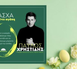 Λιτά και με φόντο το γαλάζιο ουρανού και θάλασσας της πατρίδας μας ο υπουργός Προστασίας του Πολίτη και υποψήφιος Βουλευτής Β3 Νότιου ...Πασχαλινές ευχές του υποψήφιου Βουλευτή Νοτίου Τομέα Παύλου Χρηστίδη