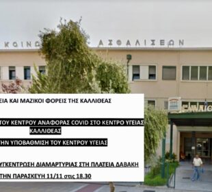 Με αίτημα την αναστολή της απόφασης για το κλείσιμο του κέντρου covid στο Κέντρο Υγείας Καλλιθέας (πρώην ΙΚΑ) σωματεία και μαζικοί φορείς ...Δ. Καλλιθέας: Εκδήλωση – συζήτηση για τα φαινόμενα βίας και εκμετάλλευσης των γυναικών