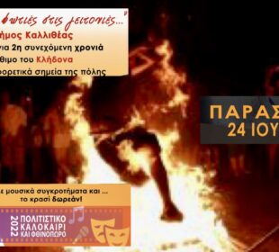 Το έθιμο του Κλήδονα αναβιώνει για 2η συνεχόμενη χρονιά σε τρία διαφορετικά σημεία της Καλλιθέας με ζωντανή μουσική και δωρεάν κρασί. Πιο ...Παραμονή των Ναυταθλητικών Σωματείων σε μόνιμη βάση χωρίς υπέρογκα ενοίκια και πρόστιμα