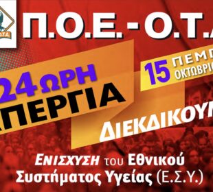 Η ΠΟΕ – ΟΤΑ συμμετέχει στην 24ωρη Πανδημοσιοϋπαλληλική Απεργιακή Κινητοποίηση που κήρυξε η ΑΔΕΔΥ για την Πέμπτη 15 Οκτωβρίου 2020 και καλεί ...Περ. Αττικής: 200 εκατ. € σε Μικρομεσαίες Επιχειρήσεις… Αιτήσεις 12/10 έως 6/11
