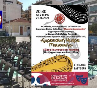 Ξεκινούν από σήμερα Τρίτη 22 Ιουνίου 2021 οι ηλεκτρονικές εγγραφές για τη συμμετοχή των παιδιών στο πρόγραμμα “Αθλητική Καλοκαιρινή Απασχόληση 2021” που ...Δ. Καλλιθέας: “Ευρωπαϊκή Ημέρα Μουσικής” με τα Σύνολα του Δημοτικού Ωδείου “Οδυσσέας Δημητριάδης”